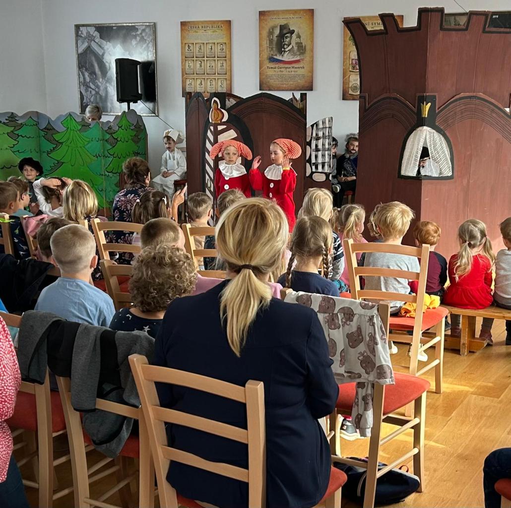 Paní učitelky, herci a herečky z MŠ Kramolna nás pozvali na divadelní pohádku O medvědu Ondřejovi. Na Kramolnu jsme jeli objednaným autobusem do místního obecního úřadu, kde už nás čekali šikovní divadelníci. Pohádka se dětem moc povedla a my děkujeme za pozvání.